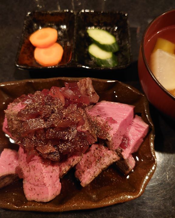 ランプ肉を、ひだまりイチオシの方法で、中に肉汁と旨味を閉じ込め、甘めのの玉ねぎ赤ワインソースを合わせて、お楽しみ頂きます😄