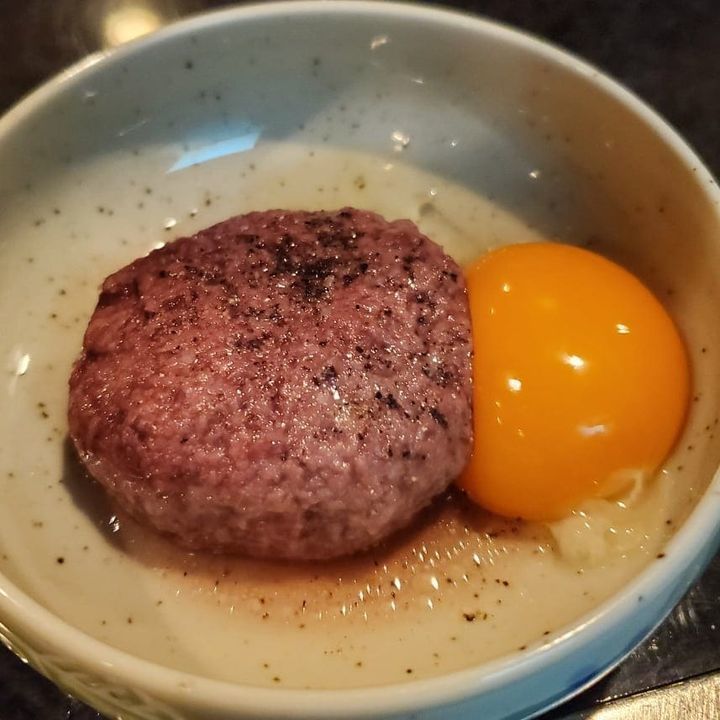ハンバーグの上には、卵黄は乗りませんでした😭