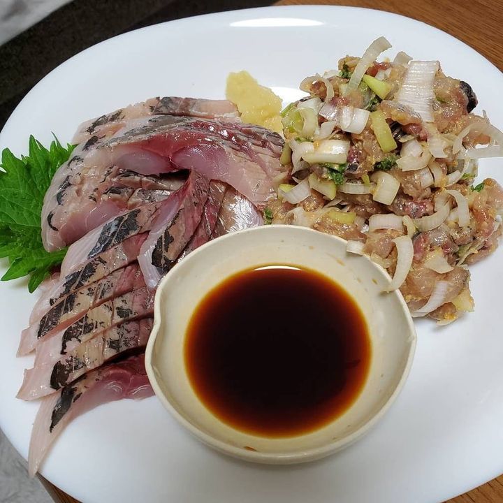 なので、お造りとなめろうで、晩ごはん😤