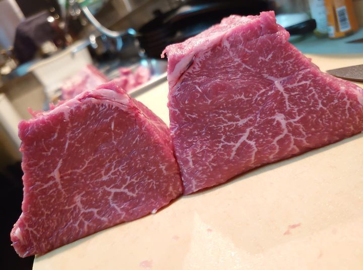 ランプとイチボに分けて、ステーキサイズにカットします😉
