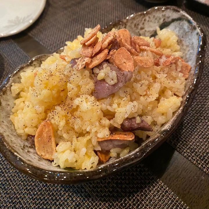 ひだまりの『ガーリックライス』は、お肉にフライしたにんにくチップで、しっかり味付け😁