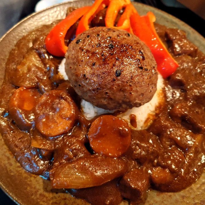 〆のカレーライス、2杯目はハンバーグのトッピング🤤