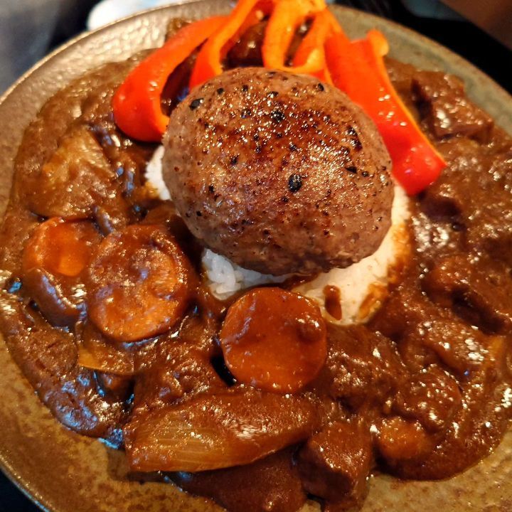 ひだまりの『本気の肉カレー』に、近江牛ハンバーグのトッピング🤣